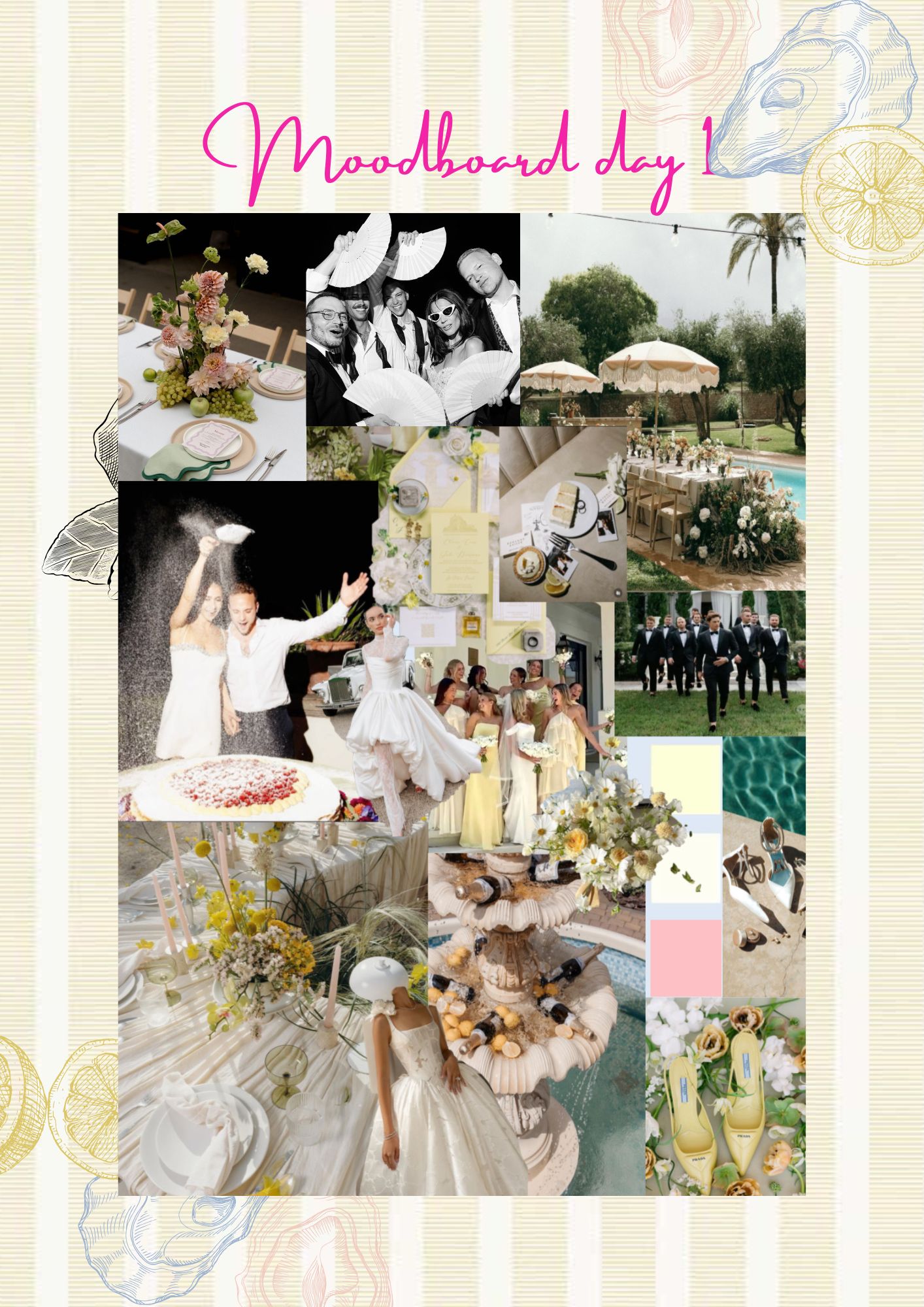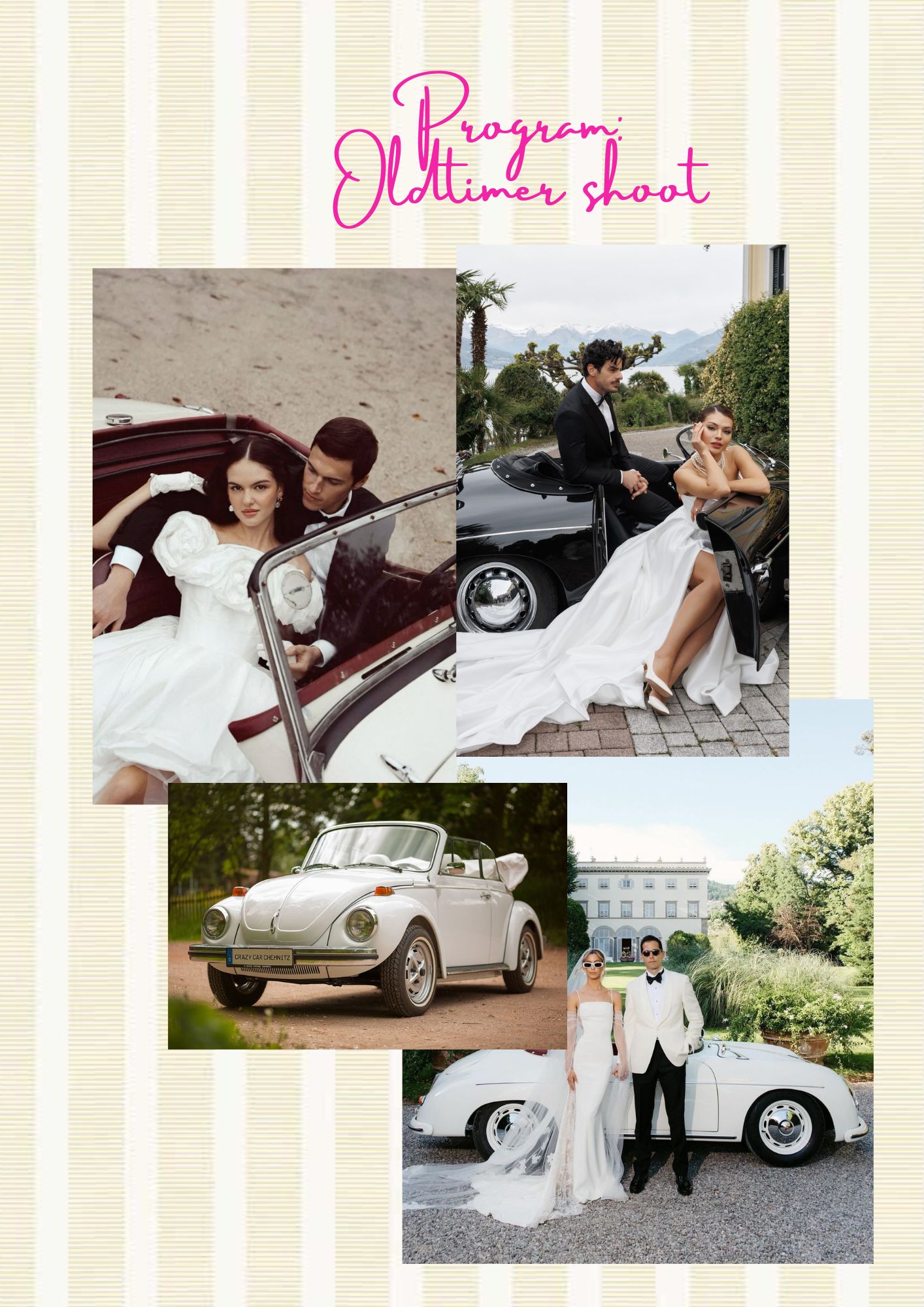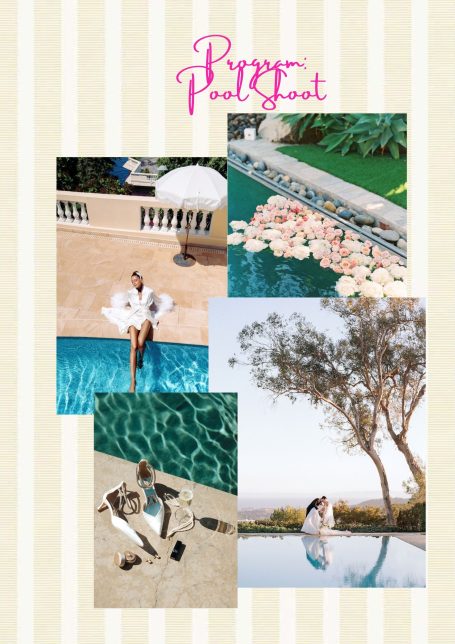 Shooting locations including a luxurious villa, a vintage car, the serene poolside, golden beaches, and hidden coastal bays